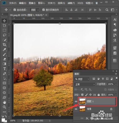 接着,我们按下【CTRL+J】把秋天的风景的图片拷贝一份出来。