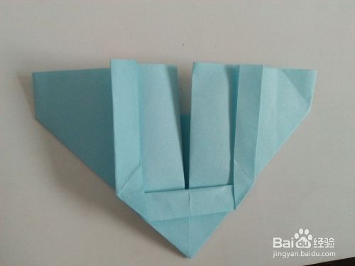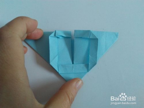 我们把纸翻到后边,把两侧的角向内折,中间的角向外折,如图一。图二是完成图。