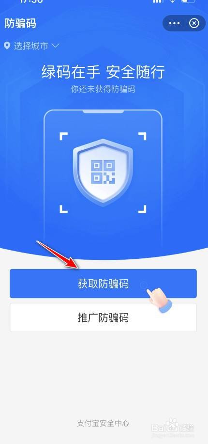 选择城市后点击获取防骗码。