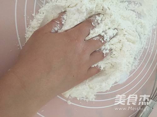 9用按压的手法混合粉和猪油