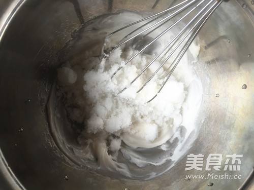 2把猪油用手动打蛋器打至顺滑。