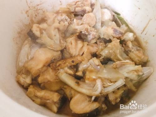 后下腌制好的鱼块盖锅转小火焗