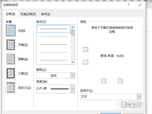 选择【应用于段落】,然后根据需要设置横线的粗细及方位(上下左右);