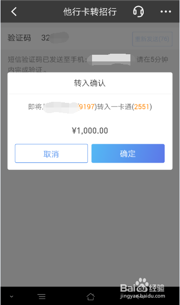 输入验证码点下下一步,进到转入确认窗口,如图