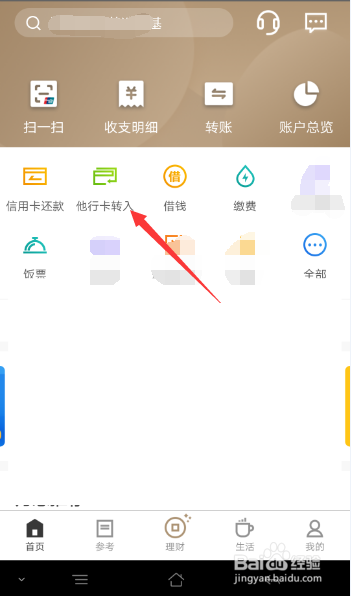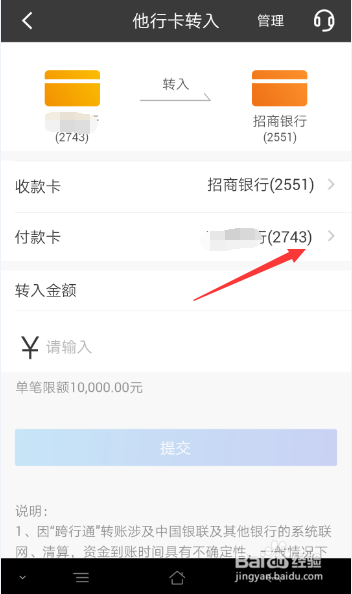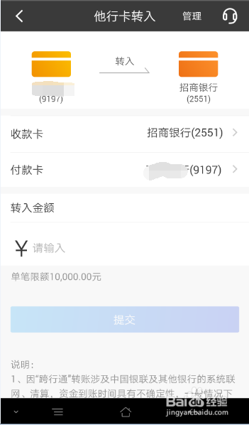 招行上如何实现他行卡转入