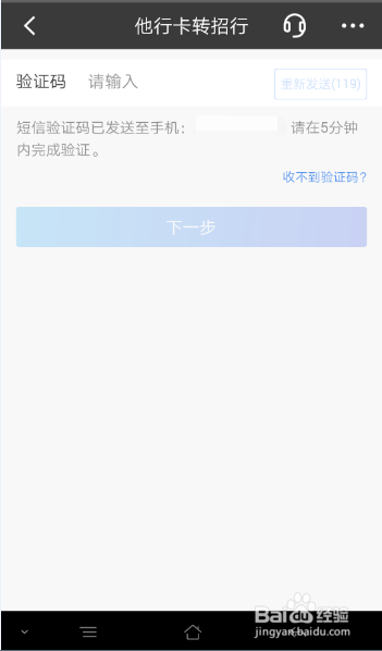 点下提交,进到他行卡转招行的短廊侮裁伐恩信验证码窗口,如图