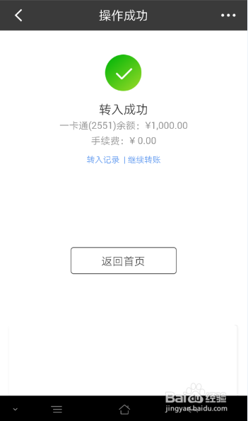 点下确定,进到操作成功炼常窗口显示转入成功,如图