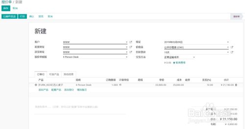 选择报价单后,在点击创建,会跳出一个新建的报价单的报表。按照提示填写信息。