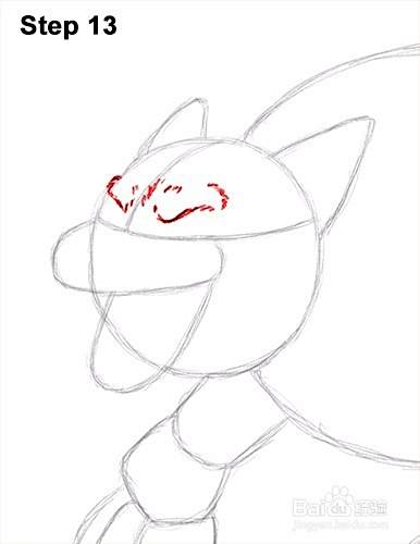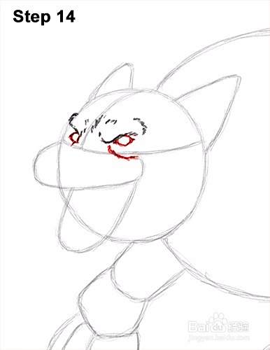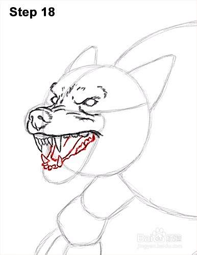 步骤3:将狼人的口吻引导为头部左侧的小C形线。在圆内拉伸线,然后向上弯曲以符合水平线。
