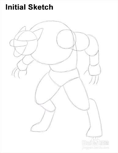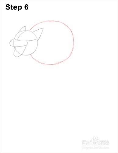 第6步:首先在头部右侧画一个小标记,画出躯干的导向。然后用长的曲线将标记连接到头部。本指南的整体形状应为椭圆形。左边的部分应该在头后面。您可以根据您希望狼人的尺寸变大或变小。