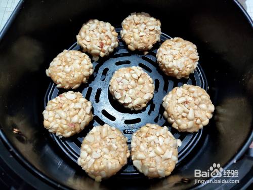 将小团轻轻压扁,放入空气炸锅炸篮里。空气炸锅或烤箱180度先烤10分钟。用刮刀小心翻一个面,再烤8分钟左右。烤好冷却后再取出装罐密封保存。一定要冷却后取,或者用用铲子小心铲出,热的很容易碎。