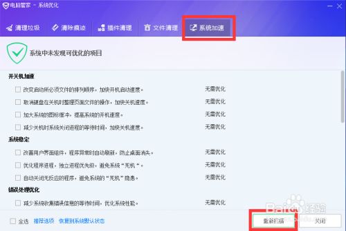 最后点击【重新扫描】,有需要优化的,点击【立即加速】即可。