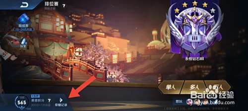 进入排位赛页面后,点击【荣耀记录】。