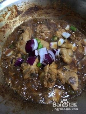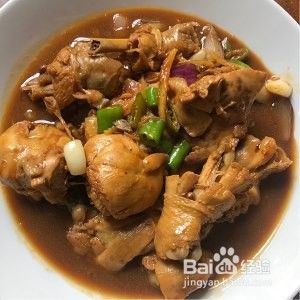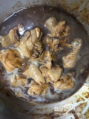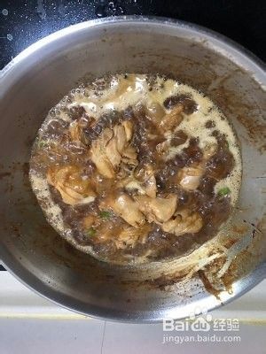 葱姜丝花椒爆锅,倒入腌制的鸡腿小火炒3分钟