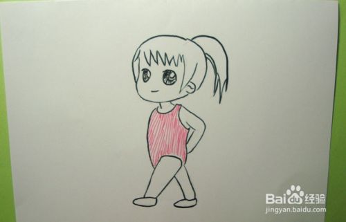 然后,用粉红色的彩色笔给小女孩的衣服涂上颜色,如下图所示。