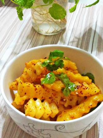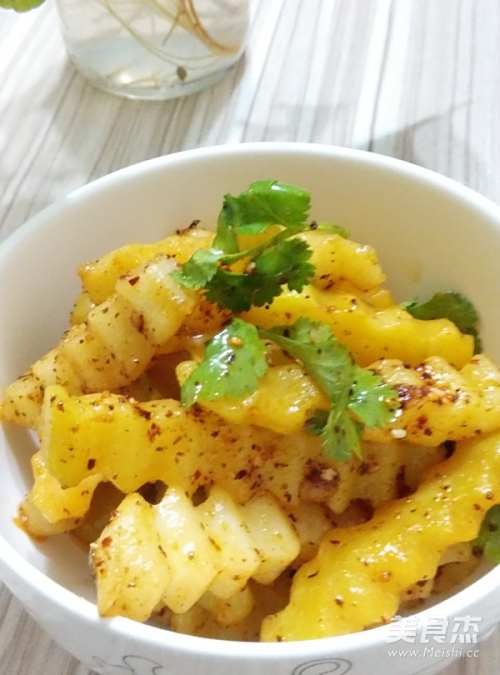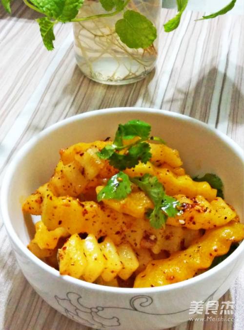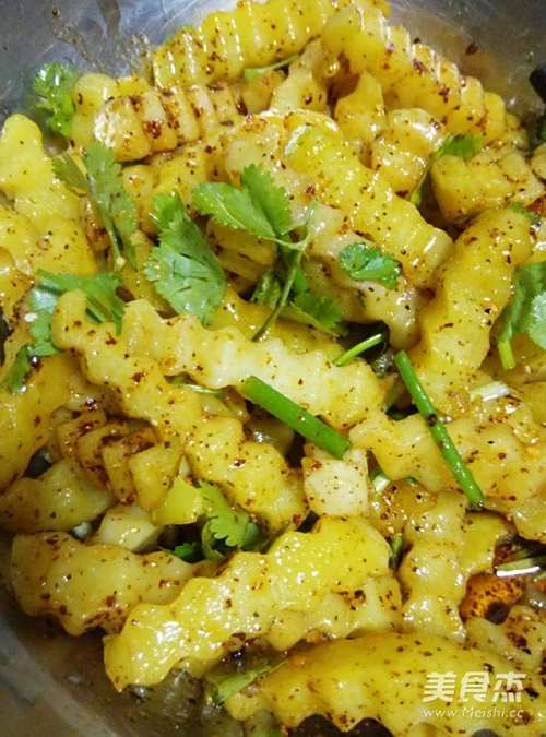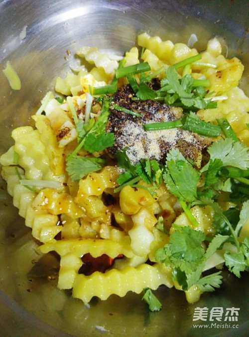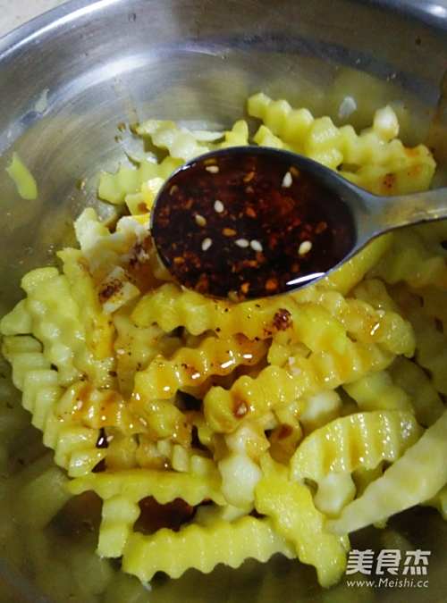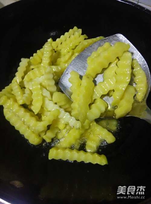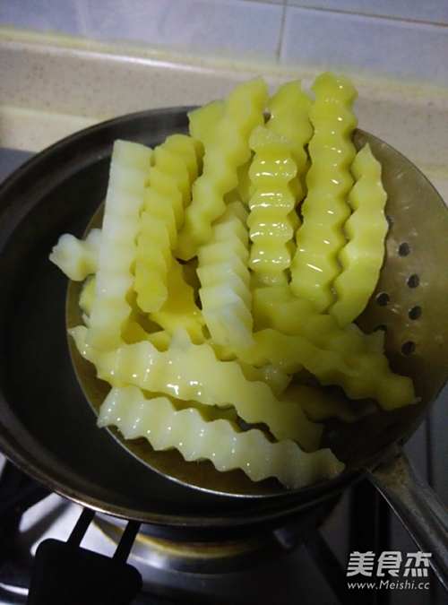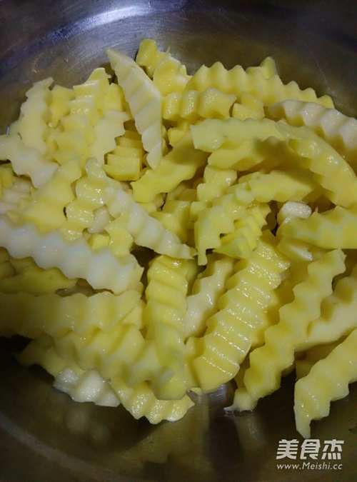 1土豆去皮,用波纹刀切条,在清水中泡一下洗去淀粉,捞出