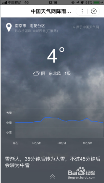 在获取了位置信息之后,系统就会为你预测当地的降水概率。