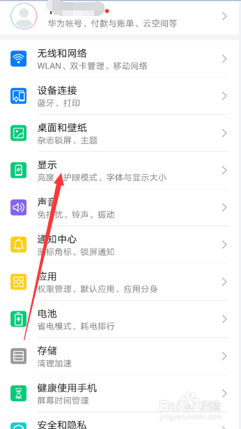 第2步进入到设置功能后,在设置功能中直接点击显示设置的功能。