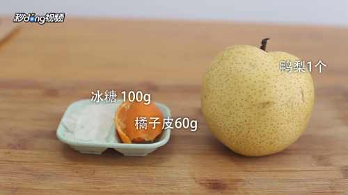 准备鸭梨1个,冰糖100g,和橘子皮60g。