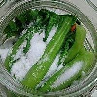 这时一定要用手把芥菜与盐调匀,腌制四五个小时以后就要用手来回的揉搓芥菜,揉出的黑水去掉不要。