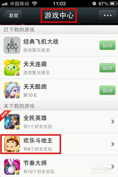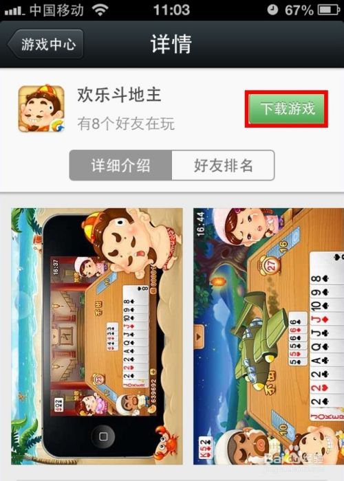 首先我们打开微信的游戏中心,然后找到欢乐斗地主这个游戏单击进入。之所以在这里下载因为这里是最新最官方的游戏。