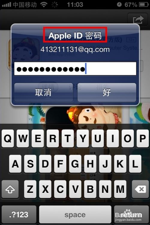 由于是iPhone4 手机所以下载需要输入ID号,输入以后我们开始下载。