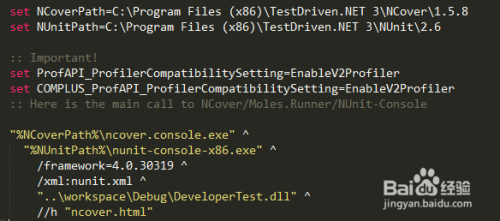 编辑执行ncover.bat,参考如下图。由于ncover1.5.8版本较低,需要指定执行.NET4.0。