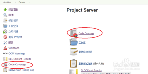 工程构建结束后,可以看到执行结果的汇总报告。点击左侧Code Coverage或者页面中间的Code Coverage,均可以查看详细报告。