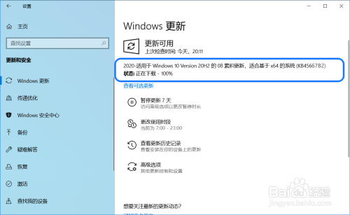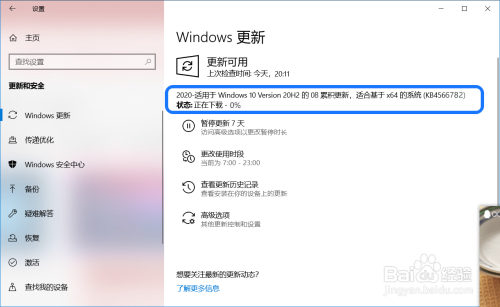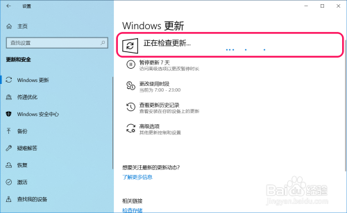 进入 设置 - Windows 设置 - 更新和安全 - Windows 更新,点击:检查更新;