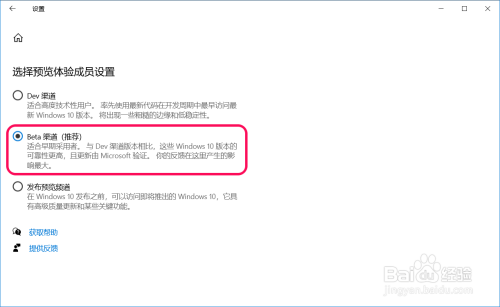 ◆ 选择预览体验成员设置:Beta渠道