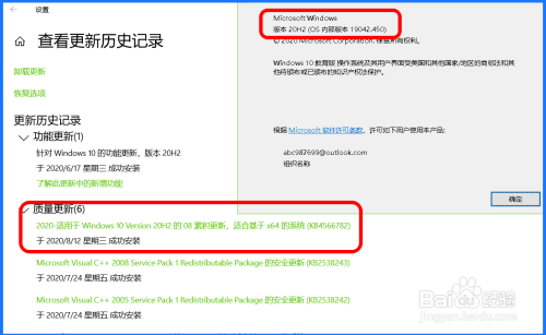 版本 20H2(OS 内部版本 19042.450)