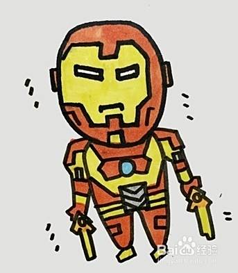 把钢铁侠边缘部分涂上红色,中间涂上黄色。