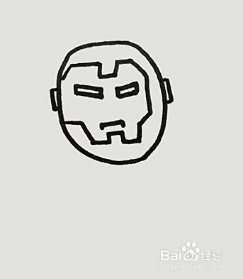 先在纸上画上钢铁侠圆圆的脑袋,里面画上头盔和长方形的眼睛。