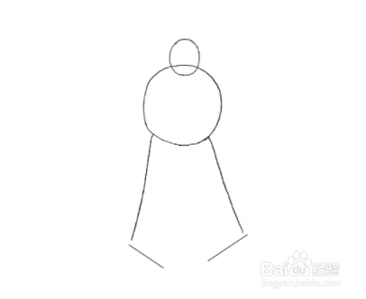 将圣诞老人身体的暂定轮廓分三部分绘制:头部圆圈、胸部较大圆圈和外套轮廓。