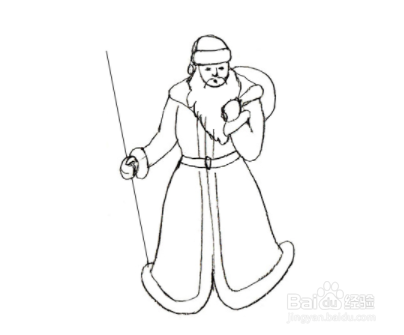 圣诞老人服装的总轮廓。右手拿着一个神奇的魔杖并添加更多细节。