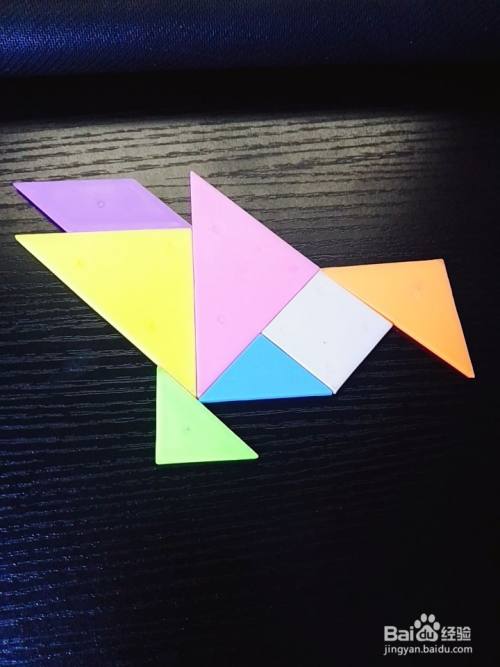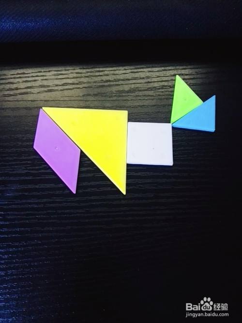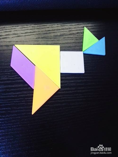 拿出一个紫色平行四边形板放在黄色大号三角形板的下方,如图所示。
