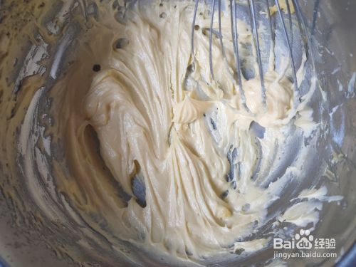 黄油融化后,加入蛋黄和糖粉。不要打。用打蛋器打松