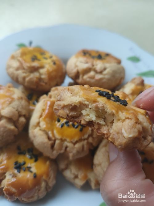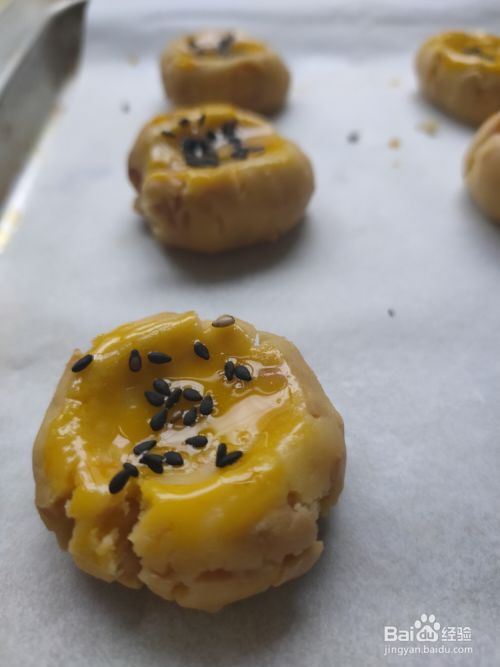 用手指中间轻压,压模后刷上蛋黄液,撒上黑芝麻装饰