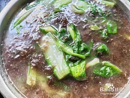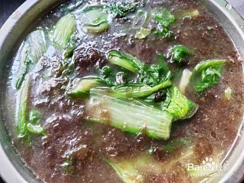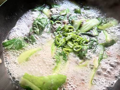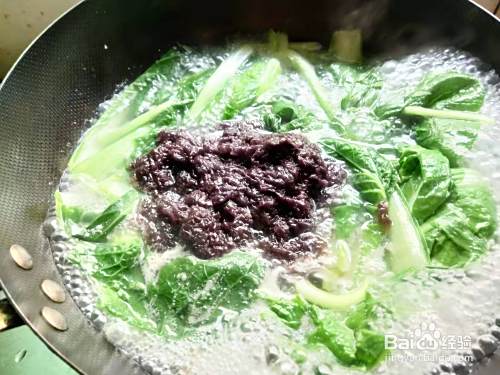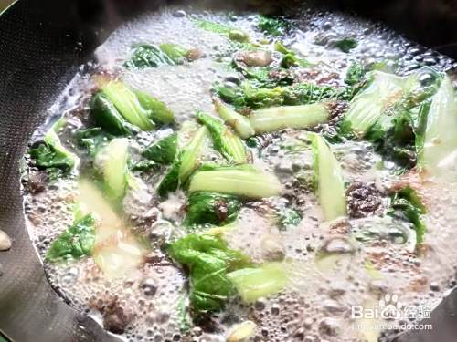 煮至小白菜半熟,放入淘洗干净的紫菜。