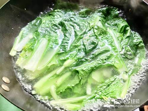 先放入洗净的小白菜。