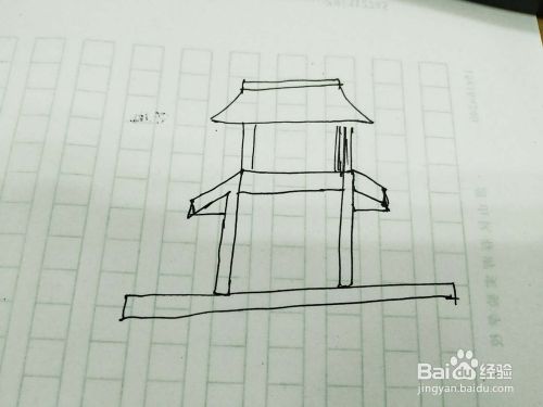 接着我们为宝塔画第三层,这一层更加小了,如下图