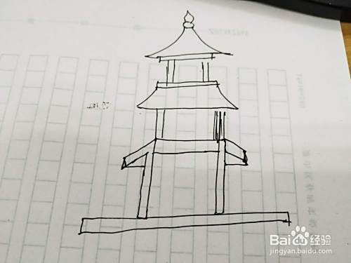 我们继续画宝塔得轮廓描黑。修饰一下。如下图