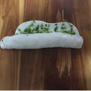 面皮上刷上少许油,撒葱花