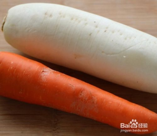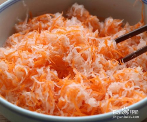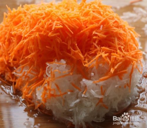 将胡萝卜和白萝卜去皮,然后擦成细丝。