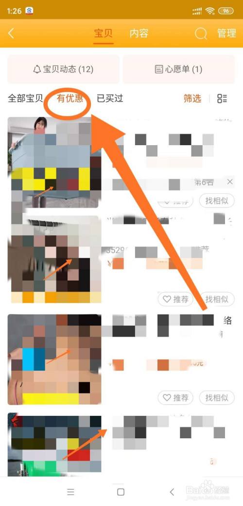 点击“有优惠”,可以查看最近有优惠活动的宝贝。