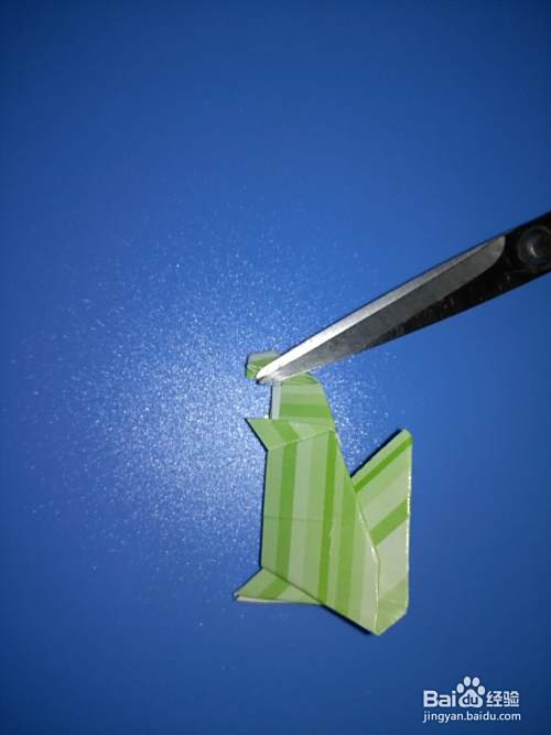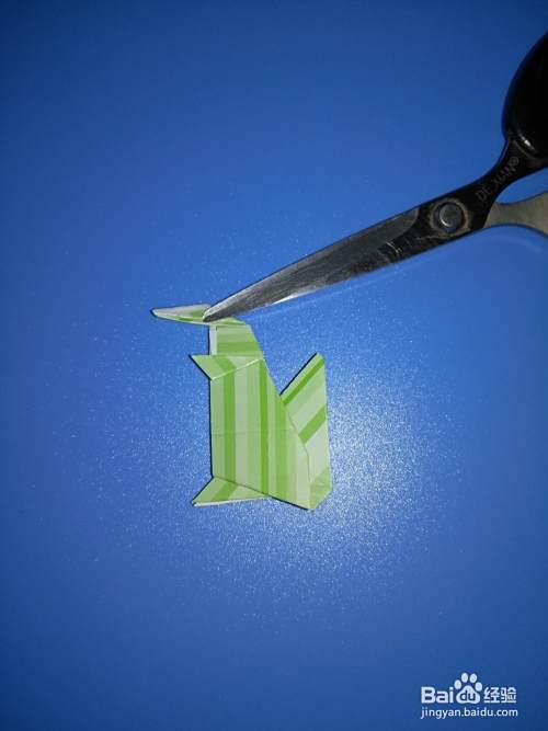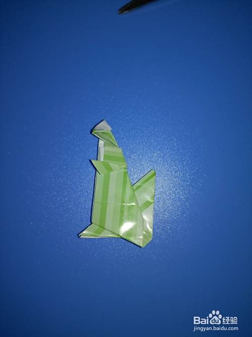 把上面的角向左下方折,然后把尖角往中间推进去,嘴巴就好了。