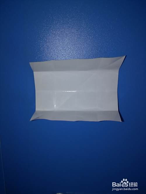 把两端的四个角折向四分之一的折痕处折出四个直角。再从中间打开,折成四个等腰三角形。