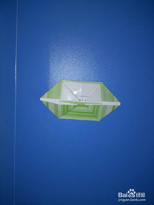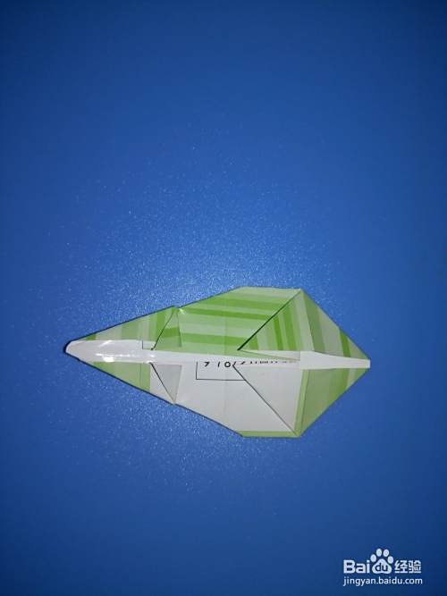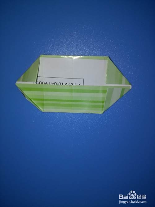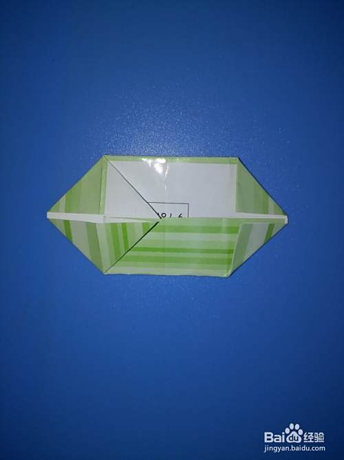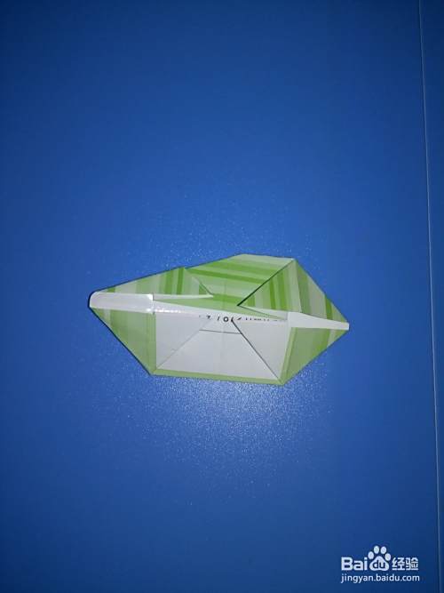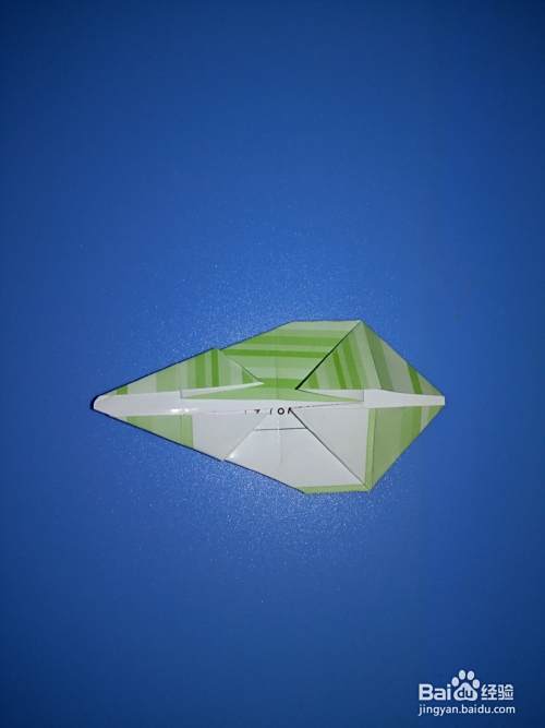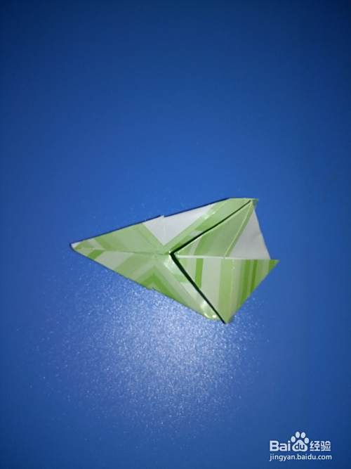 把左端的两边沿着中间线折出两个三角形。注意是向另一面折。把剩下的小的两个小三角向左边折。
