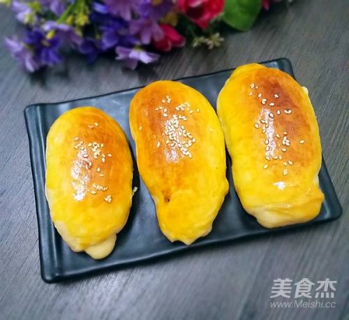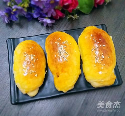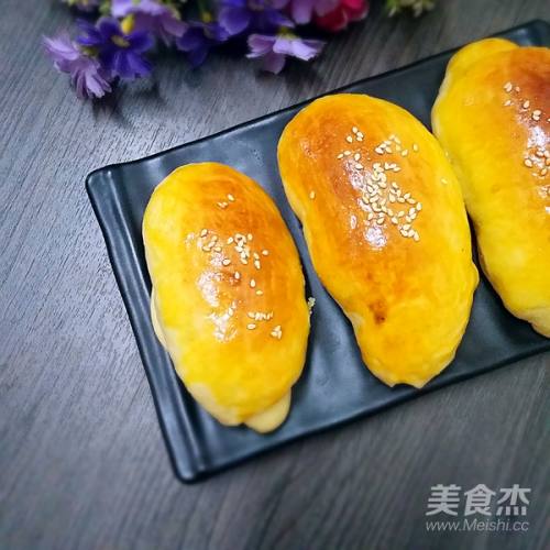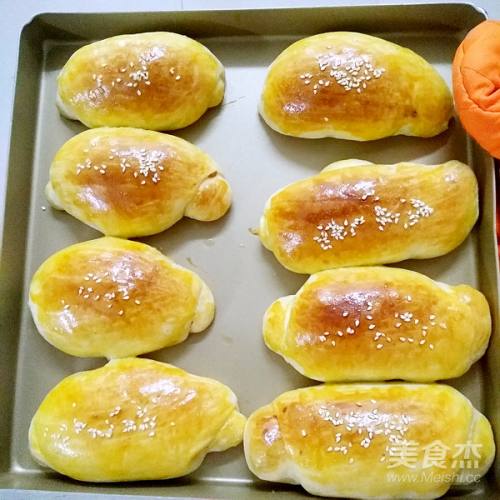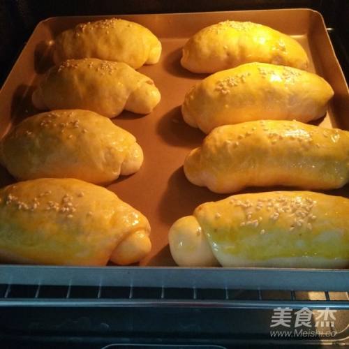 8半小时过后,取出面包刷上少许蛋液,撒上一些芝麻表面上,烤箱调至上下火150度烤25分就可以了,剩五分钟时,拿出来刷少许蜂蜜水再烤五分钟完就可以了