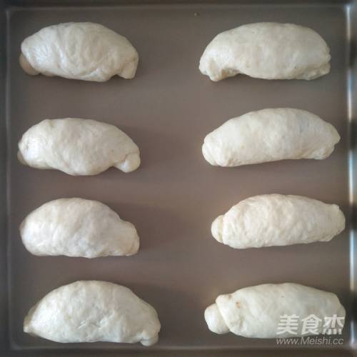 7摆入烤盘中,第二次发酵,放入烤箱中发酵半小时这样